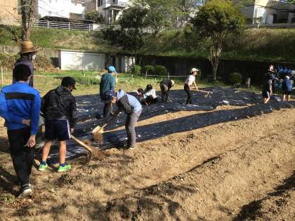 4月16日(日)に地域のボランティアの方々が、耕していただいた野菜王国の畝づくりを行ってくださいました。整備していただいた畑に、今日6年生が早速プロジェクト活動でマルチシートをはりました。本日もボランティアの方にお手伝いいただき、サツマイモを植えるための立派な畑ができあがりました。6年生は、他にも1年生のタブレットの準備や1年生と遊ぶ企画を考えるなど、全員で積極的にプロジェクト活動に取り組んでくれました。