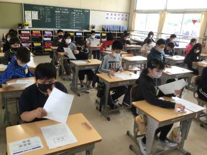 6年生が、全国学力・学習状況調査を行いました。教科は国語、算数の2教科です。みな真剣に、集中して取り組んでいました。