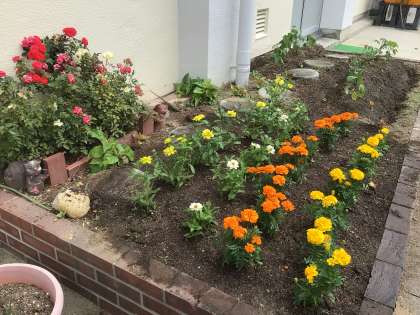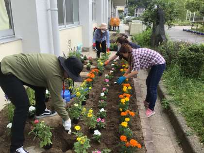 花ボランティアの皆さんのお力を借りて、職員室前の花壇を夏の花に植え替えました。これからきれいに咲いてくれるのがとても楽しみです。