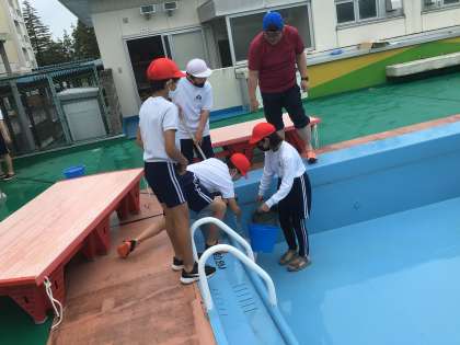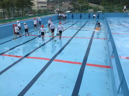 5月31日 プール清掃 公開日 2023/05/31 更新日 2023/05/31 校長室から 6月15日からの水泳学習のために、6年生が力を合わせてプールを清掃してくれました。すみずみまで丁寧に磨いてくれて、大変きれいになりました。授業の開始が待ち遠しいです。