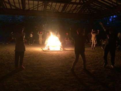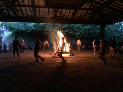 キャンプファイヤー。みんなで楽しく、思い出に残る時間を過ごしました。