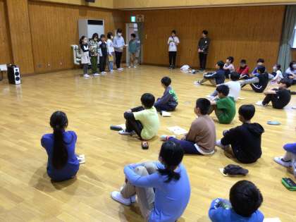 おはようございます。2日目の朝は雨ですが、これから天気は回復してくる予報です。朝のつどいで今日の目標を確認しました。今日も一日がんばります。