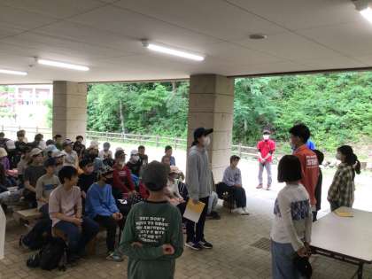 退所式。お世話になった所員の方に感謝の気持ちを伝えました。雨にも負けず、予定通りの活動ができました。もうすぐ学校に帰ります。