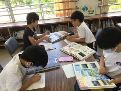 7月6日 学習の様子から 公開日 2023/07/06 更新日 2023/07/06 校長室から 4年生理科の学習。夏の自由研究に向けて事前学習です。自分の興味のある課題について熱心に調べていました。 5年生は、いくつかの事例を通して、デジタルシティズンシップについて深く考えていました。 なのはな学級は学習用タブレットを使って、クイズ作りを行いました。みんなで仲良くクイズ大会で盛り上がっていました。