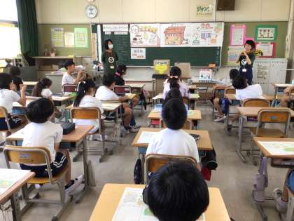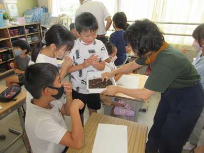 4年生総合的な学習の時間。給食の残菜について調べている4年生は、エコットから講師の先生をお招きし、生ごみは資源であること、捨てずにリサイクルすれば循環できることを学びました。ダンボールコンポストを紹介していただき、興味津々で観察していました。
