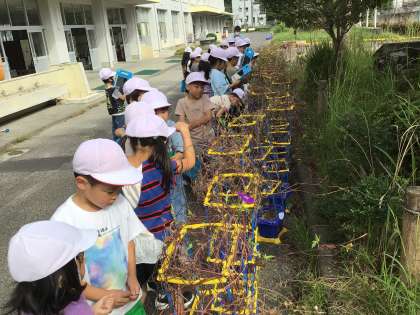10月3日 学習の様子から 公開日 2023/10/03 更新日 2023/10/03 校長室から 1年生生活科の学習。ずっと続けてきたアサガオの観察がそろそろ終わりを迎えようとしています。がんばって咲いてくれたアサガオに感謝するとともに、たくさん種ができていることに喜びを感じていました。次はツルを使ってリースを作ります。楽しみですね。