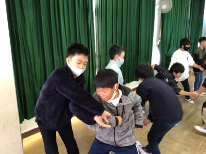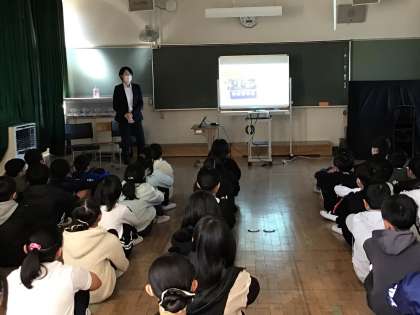 5年生が総合的な学習の時間にキャリア教育講座として、愛知県警から2名の講師の方にお越しいただき、警察の仕事について教えていただきました。講座の後半には、護身術や指紋採取の体験もさせていただきました。子どもたちは大変熱心に話を聞き、働くことのやりがいや意義について、深く考えていました。