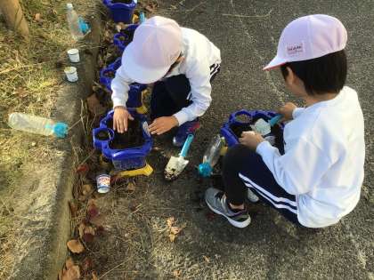 11月21日 学習の様子から 公開日 2023/11/21 更新日 2023/11/21 校長室から 1年生生活科の学習。アサガオを上手に育てた1年生が、来年の春に向けてチューリップの球根を植えました。これから一生懸命お世話をしていきます。きっと春にきれいな花を咲かせることでしょう。