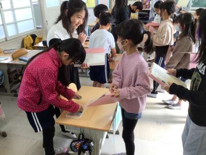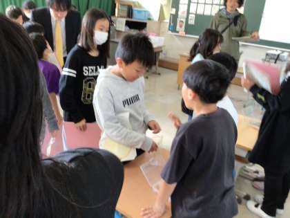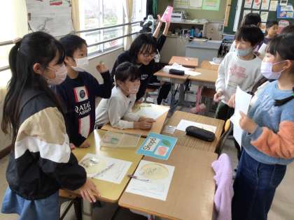 4年生外国語活動の学習。欲しいものを尋ねたり、答えたりする表現について学びました。オリジナルピザを作る活動を通して、お店の店員やお客の役割を交代で行い、楽しみながらコミュニケーションをとることができました。