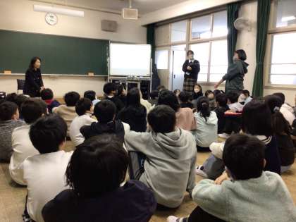 11月29日 学習の様子から 公開日 2023/11/29 更新日 2023/11/29 校長室から 5年生総合的な学習の時間。キャリア教育で様々な職業について学んでいる5年生が、学校医の大島美穂子先生を講師として、医師の仕事についてお話を伺いました。大島先生からは、真剣に話を聞く姿勢や意欲的に質問する姿が素晴らしかったとお褒めの言葉をいただきました。
