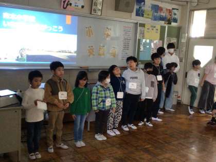 高橋中学校で行われた小中交流会になのはな学級が参加しました。自分のことや学校のことを紹介をしたり、ゲームをしたり、他の小学校や高橋中学校の発表を聞いたりと、笑顔でで交流し、いろいろな学校の友達と仲良くなることができました。