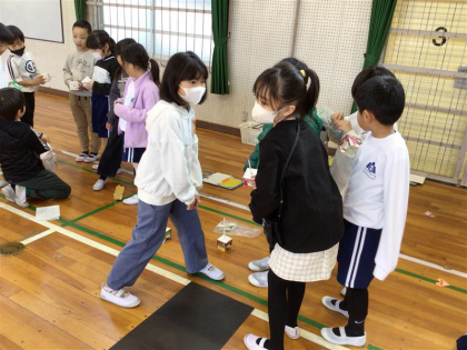 1月12日 学習の様子から 公開日 2024/01/12 更新日 2024/01/12 校長室から 1年生、2年生生活科の学習。2年生が工夫を凝らして作ったゴム鉄砲のおもちゃを1年生に紹介し、一緒に仲良く遊びました。使い方や良く飛ばすためのコツを上手に伝えていました。