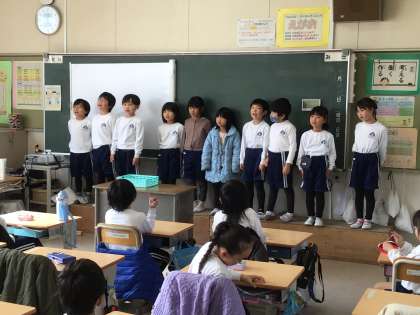1月19日 学習の様子から 公開日 2024/01/19 更新日 2024/01/19 校長室から 1年生、2年生学習発表会の練習。全体発表や歌、個人のセリフなど、学習発表会に向けてがんばって練習していました。1年生もとても大きな声で立派に発表していました。