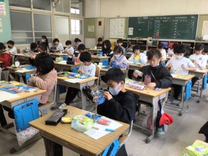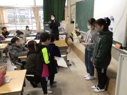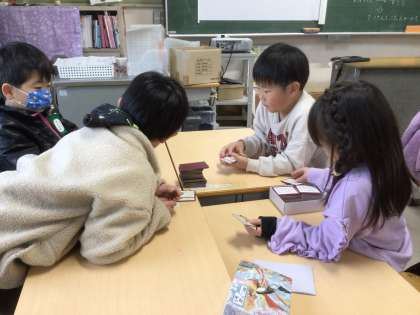 2月21日 学習の様子から 公開日 2024/02/21 更新日 2024/02/21 校長室から 1年生生活科の学習。昔あそびをしていました。百人一首の札を使ってゲームを楽しんでいました。 3年生図工の学習。「空きようきのへんしん」と題し、それぞれ思い思いの飾りを工夫していました。 朝の会の前には、先日行われた図書館祭りで、全員が図書館へ足を運んでくれたクラスを図書プロジェクトの児童が表彰してくれていました。図書プロジェクトのみんなのおかげで図書館が人気の場所になっています。