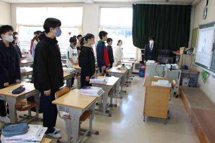 2年生から5年生は、オンラインで始業式と進級認定を行いました。