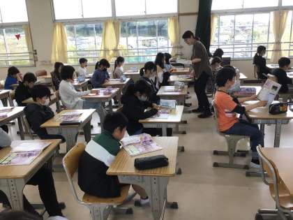 4年生の音楽の授業では、日本で昔から歌い継がれている「さくらさくら」の曲を聴きました。歌詞を見ただけではわからなかった子も、歌を聴くと「知ってる!」と反応していました。