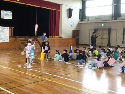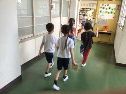 4月26日 1,2年生 学校たんけん 公開日 2024/04/26 更新日 2024/04/26 各学年から 2年生が1年生に学校を案内しようと、学校たんけんを行いました。班の旗を手に、体育館を出発し、図書室や音楽室、職員室など、学校の中のいろいろな場所を案内しました。2年生は、職員室や校長室に入るときに、あいさつの手本を示し、先輩らしさを見せてくれました。1年生は、音楽室においてあるさまざまの楽器を見て、興味津々といった様子でした。