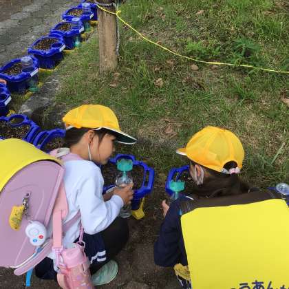 1年生がアサガオの種をまきました。