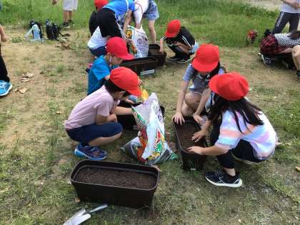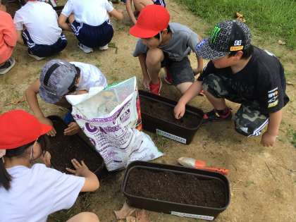 この日は、ヒマワリの種まきをしました。順調にいけば、300本のヒマワリが花を咲かせる予定です。