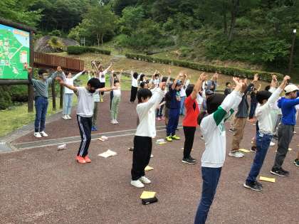 ラジオ体操を終え、目を閉じて自然の音を楽しみました。
