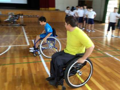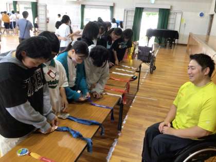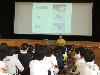 6/26 6年 パラスポーツ交流授業 公開日 2024/06/26 更新日 2024/06/26 各学年から アスリート森井大輝選手に来ていただき、チェアスキーという競技や、競技に取り組む思いについてお話ししていただきました。 お話のあとには、全員が競技用車いすを体験し、代表の児童が森井選手と対決しました。 最後には、森井選手のたくさんのメダルをさわらせてもらい、競技やメダルのことを直接質問することができました。