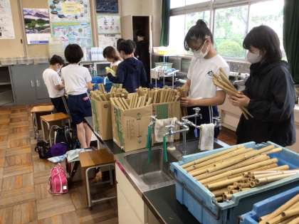 前回よりもたくさんのプロジェクトの募集があり、掃除道具点検、あいさつ運動、トイレ床掃除、竹の仕分けなど、さまざまな活動が行われました。