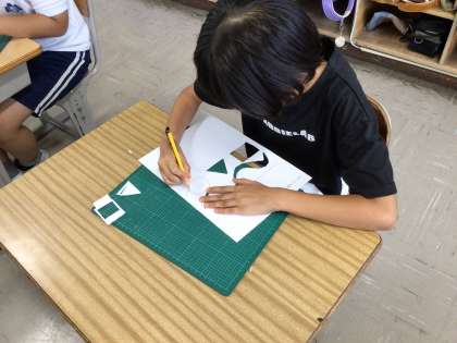 7/12 4-2 図工 公開日 2024/07/12 更新日 2024/07/12 校長室から カッターナイフで形に合わせて切り出す練習をしていました。 直線だけでなく、カーブや円も、線に合わせて切ります。 用紙をうまく回しながら、安全に切れるように、どの子の集中して作業していました。