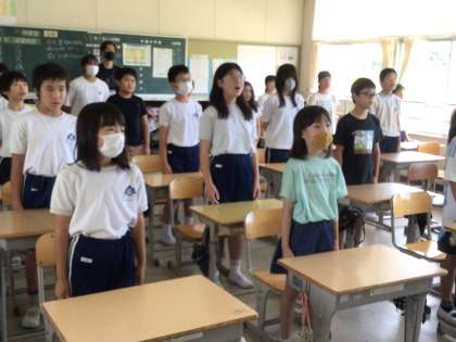 集会の終わりには、全校で元気よく校歌を歌いました。