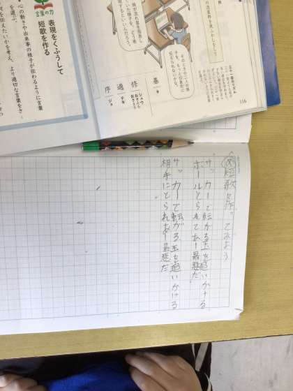 5年生は短歌づくりに取り組んでいました。