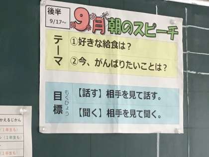 話すことだけでなく、クラスの子のスピーチをしっかり聴けるようになってほしいと思います。