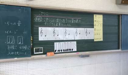 「こきりこ」の曲に出てくる5つの音を使って、オリジナル曲を作っています。