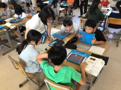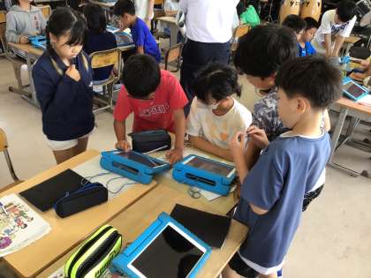 学習用タブレットにあるアプリを使っての作曲です。