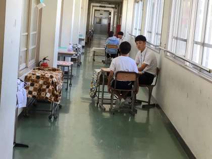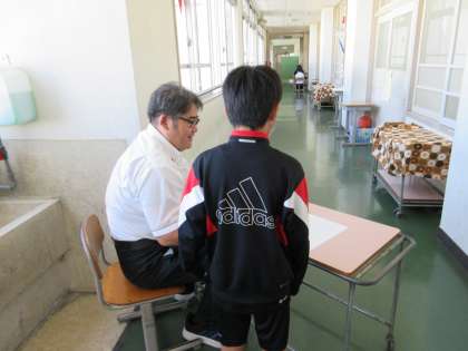担任の先生が、廊下や別の部屋で、一人一人にがんばれとことやこれからの課題を伝えながら渡しています。