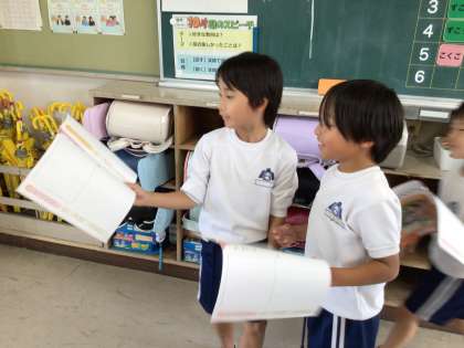 こぎつねが「おかあさんありがとう」と言ったときの気持ちについての考えを、友達と交流合い、そのあと全体の場で発表しました。