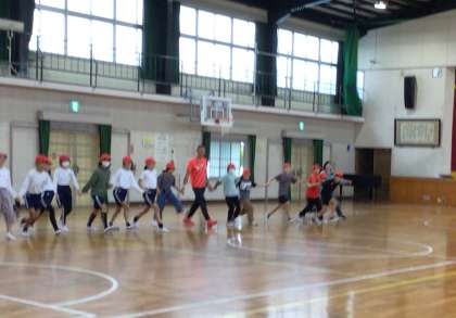 最初の1時間は、体育館で体を動かしながら、みんなで協力するゲームを楽しみました。