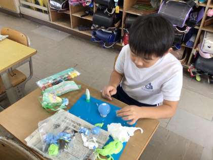 紙粘土で「元気のおまもり」を作っています。