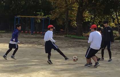 声を掛け合ってパスを回ったり、ボールを追いかけたりして走り回っているので、寒さも気にならないようです。