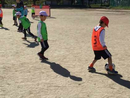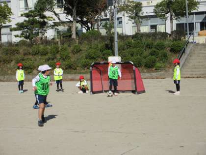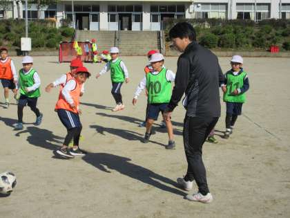 11/21 1,2年生 グランパスボールクリニック 公開日 2024/11/21 更新日 2024/11/21 校長室から 1,2年生が、グランパスの方に来ていただき、サッカーを教えてもらいました。 「ボールは、優しくタッチするといいよ」「方向を変えるときは、足で壁を作ってね」とポイントを教えてもらい、楽しく活動できました。 最後には、簡単なゲームも行いました。