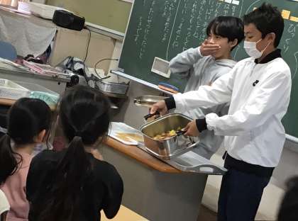 給食の時間に1年生の教室に届けてくれ、食べることができました。