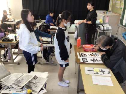 12/3 5-1 書写 公開日 2024/12/03 更新日 2024/12/03 校長室から 12月になり、書初めの練習にも力が入ってきました。 手本をじっくりと見ながら、一文字一文字、ていねいに力強い字を書いています。 書き終えると、ボランティア講師の先生に見ていただきます。 一人ひとり、上手く書けているところにその場で丸をつけてもらい、「ここをこうすると、もっとよくなるよ」と形や筆使いのコツを教えていただいています。 練習の機会は、まだあるので、さらに上達しそうです。