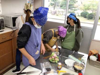 12/11 6-1 家庭科 公開日 2024/12/11 更新日 2024/12/11 校長室から 調理実習を行いました。 今日の内容は、副菜の調理です。 個々に副菜を何にするかを決めて材料を準備し、調理をしています。 事前に作り方を書いたワークシートで手順を確認しながら、作業を進めていました。 ソーセージと野菜の炒め物、ポテトサラダ、大根と人参の甘辛煮など、いろいろな種類の副菜ができあがっていました。