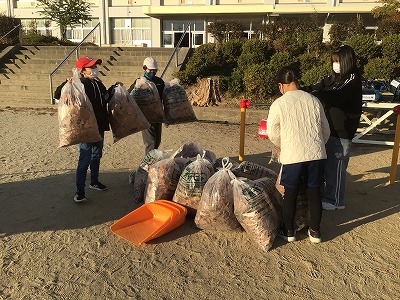 屋外整備は、凍結防止剤をまいたグランドを整備したり、たくさんの落ち葉を集めたりしてくれていました。