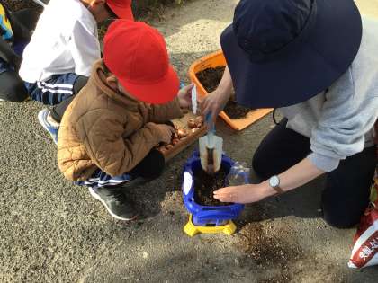 12/18 1-2 生活科 公開日 2024/12/18 更新日 2024/12/18 校長室から アサガオを育てていた植木鉢に、チューリップの球根を植えていました。 アサガオの種まきのときに比べると、どの子も手際がよくなっていて驚かされました。 このチューリップは、来年度入学してくる1年生を迎えるためのものです。 きれいな花を咲かせて、新入生に喜んでもらえるように、お花のお世話をがんばるそうです。