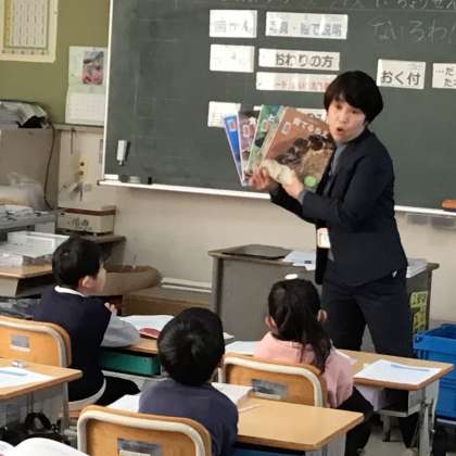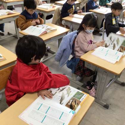中央図書館の方に講師として来ていただき、図鑑を使った学習を行いました。