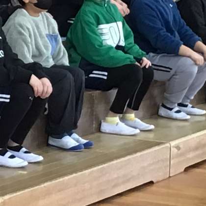 5年生は、座って待つときの足元にまで、しっかりと気を配って練習していました。高学年らしい発表になりそうです。