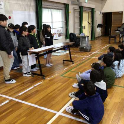 1年生と2年生、また3年生と4年生がお互いの発表を見合いました。