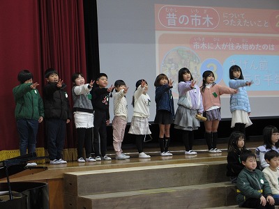 市木地区の昔の様子や区民館や八柱神社について聞いたり、調べたりしたことを伝えました。