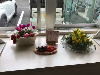 3月が近くなり、ひなまつりにちなんだ飾りもお花と一緒においてくださいました。