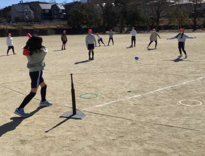 5年生は、体育でティーボールという競技に取り組んでいます。