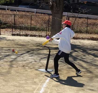 バッティングティーにボールを乗せ、そのボールを打つ、野球に似たスポーツです。